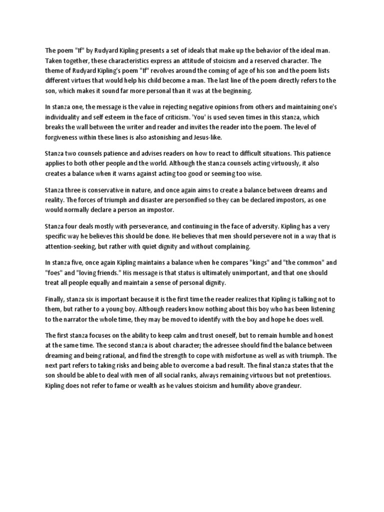A Short Analysis Of Rudyard Kipling S If Interesting Literature